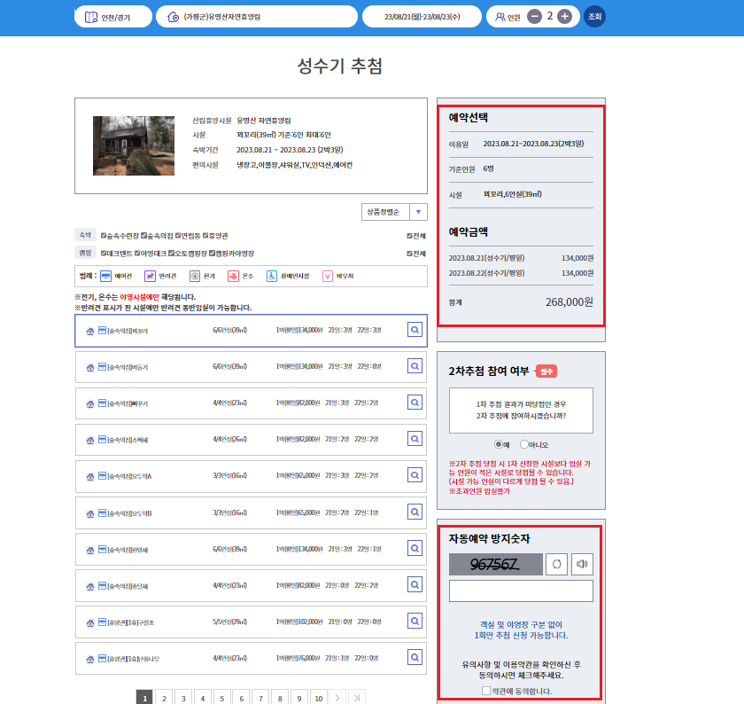그 밑에 2차 추첨 참여 여부도 예 체크하시고 자동예약 방지 숫자 입력하시고