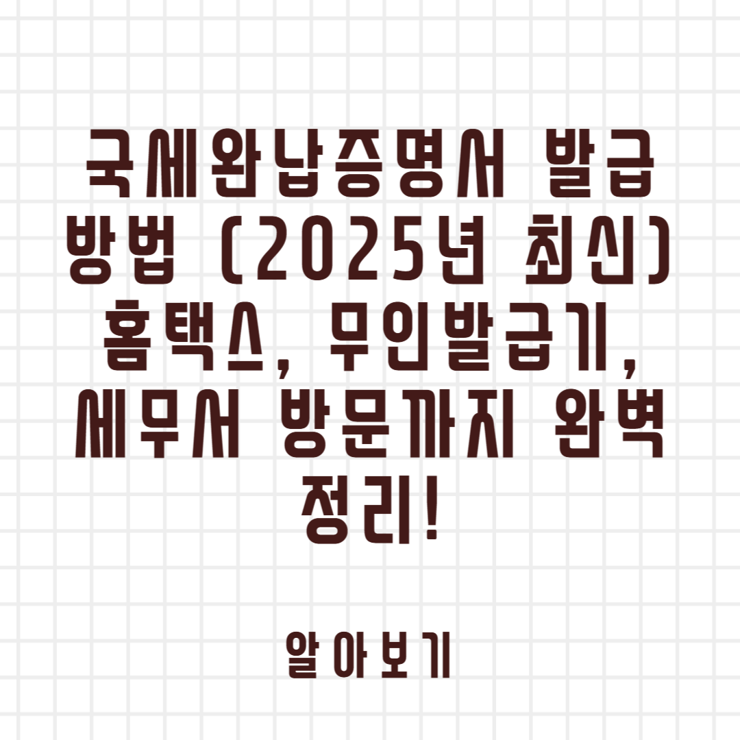 국세완납증명서 발급 방법 (2025년 최신) 홈택스, 무인발급기, 세무서 방문까지 완벽 정리!