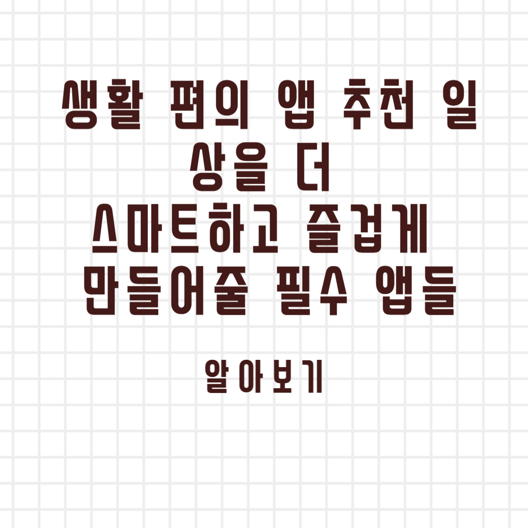 스마트폰은 이제 단순한 통신 기기를 넘어 우리의 생활을 더욱 편리하게 만들어 주는 필수품이 되었습니다. 생활 편의 앱을 잘 활용하면 일정 관리, 가계부 작성, 배달 서비스 이용, 교통 정보 확인 등 다양한 일상 업무를 더욱 쉽게 처리할 수 있습니다. 이번 포스팅에서는 일상을 더욱 편리하게 만들어 줄 최고의 생활 편의 앱 추천 리스트를 소개해 드리겠습니다.