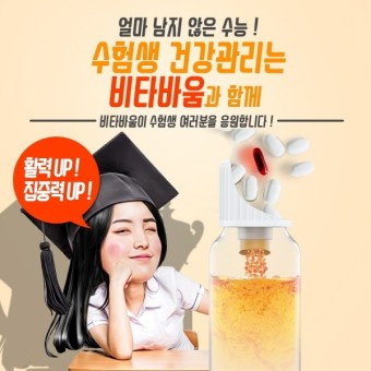 수능을 잘 준비하기 위해서는 수능날까지 건강 챙기는게 가장 중요합니다. 컨디션 관리를 위해서 평상시에 공부하면서 비타민과 같은 영양제를 잘 챙기면 면역력이 향상 되면서 피로회복에도 많은 도움이 돼 공부하는데 큰 도움이 될겁니다.
