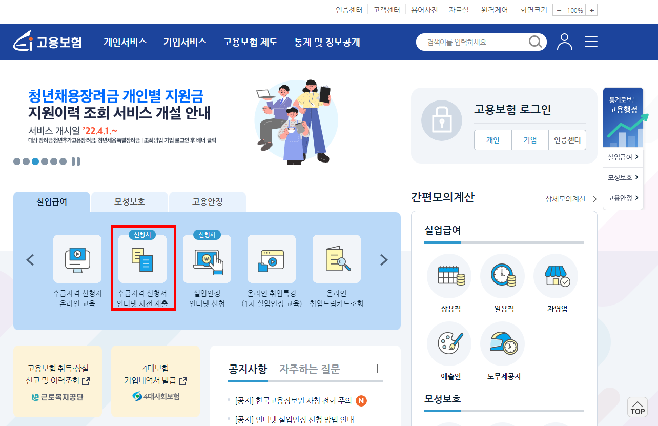 실업급여 온라인 신청 절차