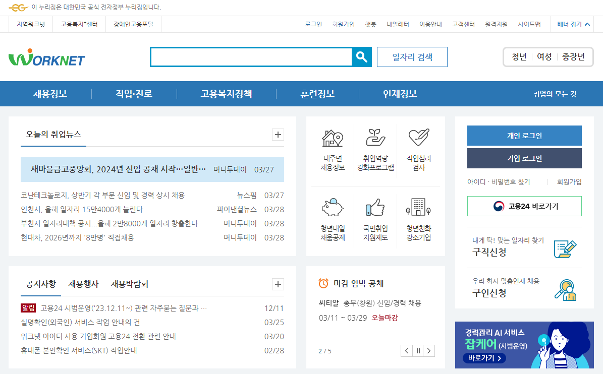 처음 등록 하면 아래 링크 워크넷 또는 고용24에서 로그인하고 이력서 등록하고 구직신청을 하면 됩니다.