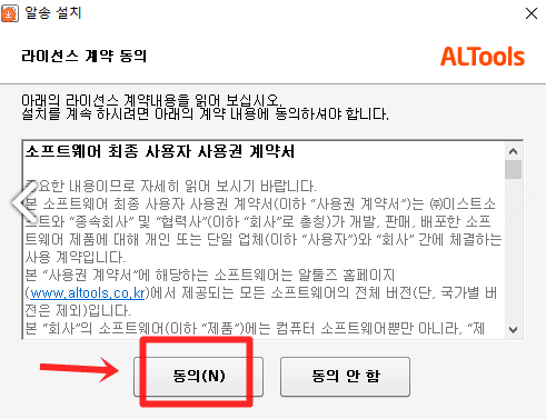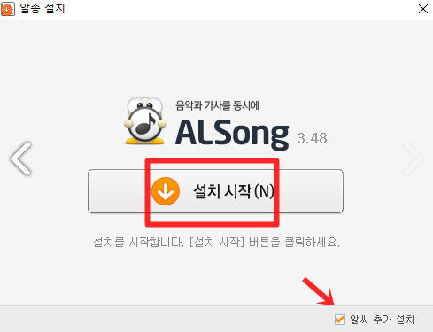 4. 동의를 클릭하고 설치 시작을 클릭합니다. 아래 알씨 추가설치는 필요하면 체크하시면 됩니다.