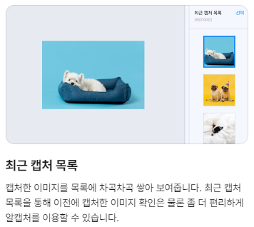 ✔ 스크롤: 세로로 긴 화면을 캡처할 경우 스크롤이 되면서 캡처합니다.