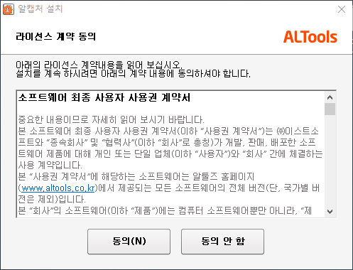 위에 버튼을 클릭해서 알툴즈을 다운받고 다운받은 파일을 실행합니다.