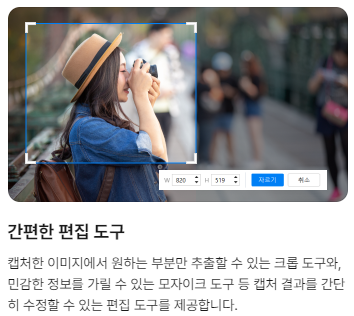 ✔ 크기지정: 캡처하는 사각형을 원하는 크기로 지정하여 캡처합니다.