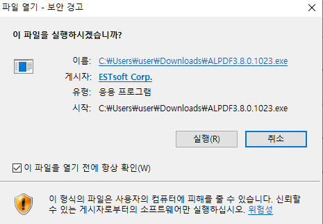 저장한 ALPDF.exe 을 실행해서 동의 누르시고 설치 진행시면 완료됩니다.