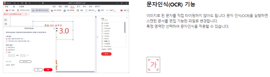 ✅ 문자인식: PDF 파일 편집 불가능 일때 문자인식(OCR)을 하면 글자를 인식해 편집 가능