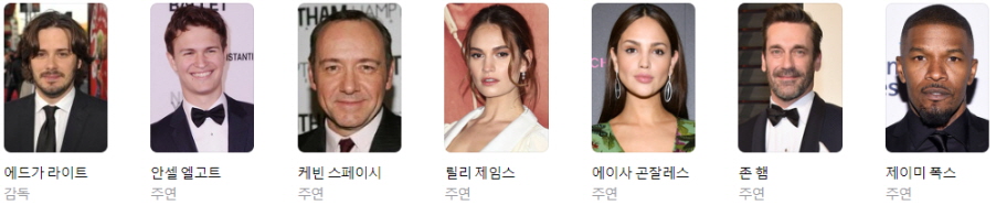 이작품을 연출한 에드가 라이트가 연출한 모든 작품 중에서 가장 유명한 작품은 좀비 영화인 '새벽의 황당한 저주'인데, 영화 후반부에는 퀸의 노래를 이용한 유쾌한 장면이 나옵니다. 또한 이 작품은 다양한 신나는 노래를 활용한 재미있는 장면이 특징입니다. 개인적으로 그의 장점 중 하나는 신나는 음악을 잘 활용하는 것이라고 생각하는데, 좋은 곡들이 적재적소에 잘 배치되어 있어서 처음부터 끝까지 재미있게 볼 수 있어서 좋았습니다. 다만 전체적인 이야기 흐름이 뻔하고 크게 다를 건 없기 때문에 호불호가 갈릴 수 있지만 에드가 라이트가 음악과 액션에 초점을 맞춘 연출이 마음에 들지 않는다면 큰 흥미를 못 느꼈을 겁니다. 하지만, 다행히도 저는 이런 요소들이 제 취향에 맞아서 끝까지 재밌게 볼 수 있었습니다. 이 영화의 가장 큰 장점은 다양한 액션 장면과 다양한 사운드가 조화를 이룬다는 것이었지만, 다양한 전투 장면과 추격 장면을 연출했기 때문에 전혀 지루함을 느끼지 않아 몰입도가 높았다는 점입니다. 거기다가 배우들의 연기력이 뛰어났기 때문에 재미가 배로 더 가해져 생각했던 것보다 더 좋은 액션 영화라고 생각합니다. 킬링타임용으로 한 번 보시는 것을 꼭 추천합니다.