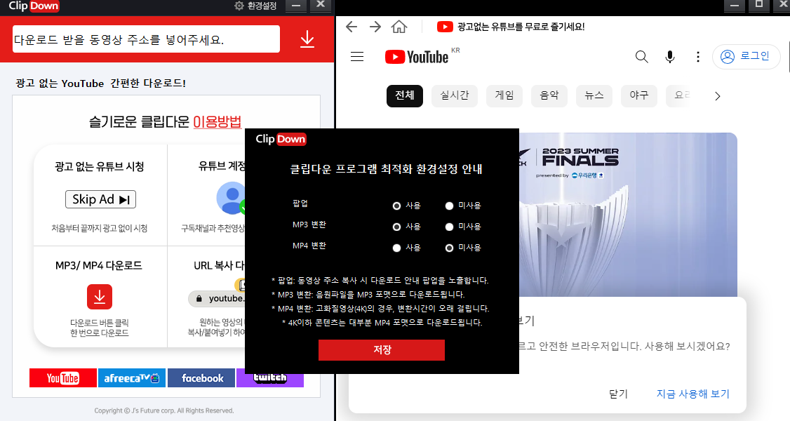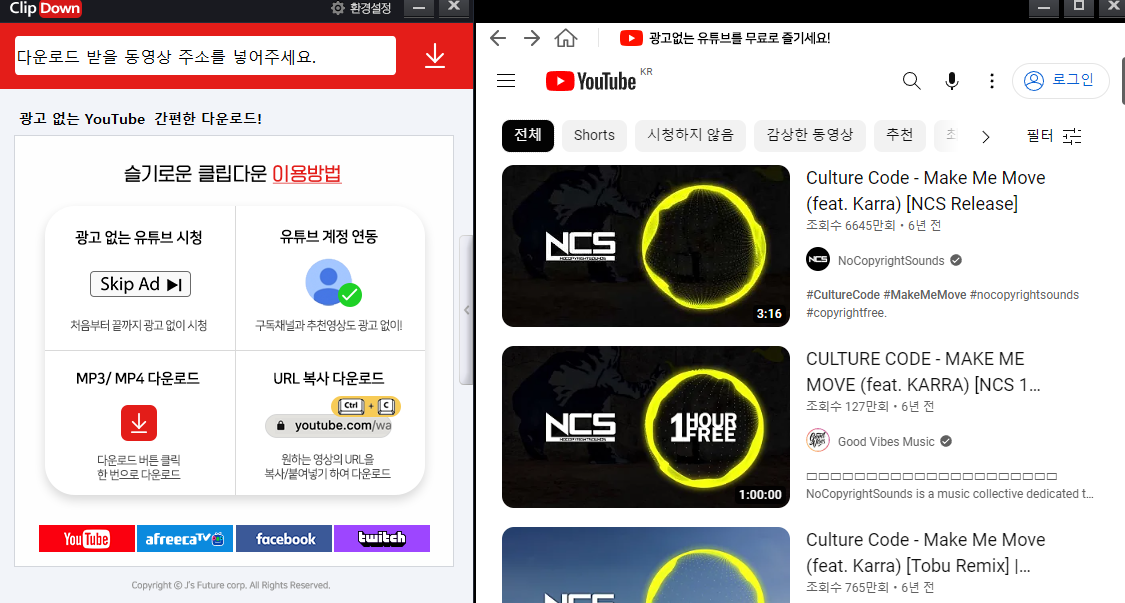 클립다운은 무료로 유튜브에서 영상과 음원을 추출하게 해줍니다.