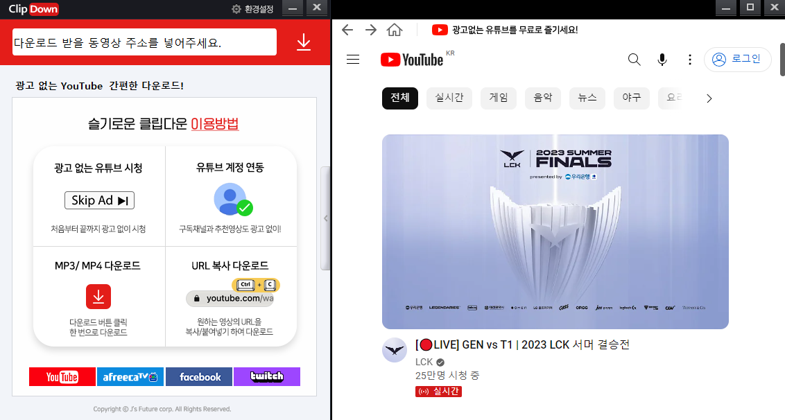 클립다운은 유튜브를 비롯한 여러가지 스트리밍 플랫폼에 업로드된 영상이나