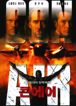 콘 에어"는 사이먼 웨스트 감독의 1997년 액션 스릴러 영화입니다. 그 영화는 니콜라스 케이지, 존 쿠삭, 존 말코비치, 스티브 부세미, 그리고 빙 램스를 포함한 앙상블 출연합니다. 이 작품은 기억에 남는 다양한 캐릭터들을 특징으로 합니다. 카메론 포는 비행기 납치 사건에 휘말리는 강인하고 명예로운 전직 군인인 주인공입니다. 사이러스 "바이러스" 그리섬은 주요 적대자이자 지적이고 무자비한 범죄 주모자입니다. 빈스 라킨은 납치 사건에 대한 대응을 조정하는 임무를 맡은 미국 보안관입니다. 다른 주목할 만한 인물로는 폭력적이고 충성스러운 수감자인 네이선 "다이아몬드 독" 존스(빙 램스), 사이코패스 연쇄 살인범인 갈랜드 그린(스티브 부세미), 그리고 그들만의 독특한 성격을 가진 다양한 죄수들이 있습니다. 치스톤 픽처스와 제리 브룩하이머 필름스가 제작했습니다. 이 각본은 스콧 로젠버그이 썼습니다. 예산은 약 7천 5백만 달러고, 주요 촬영 장소는 캘리포니아, 유타, 그리고 네바다를 포함한 다양한 장소에서 이루어졌습니다. 라스베가스 스트립의 폭발적인 피날레를 포함한 이 영화의 액션 장면들은 빼놓을 수가 없습니다.
