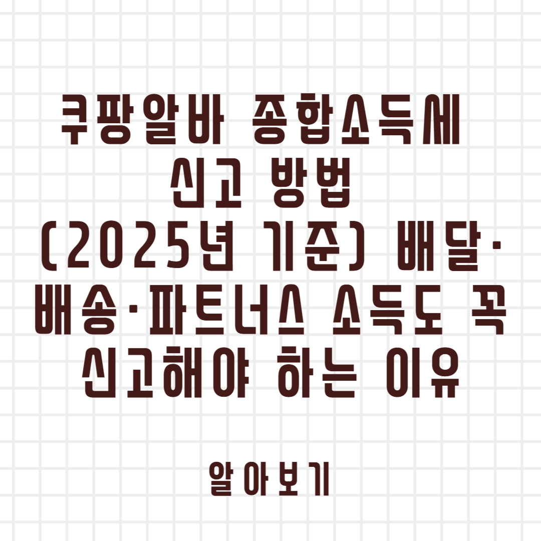 쿠팡알바 종합소득세 신고 방법 (2025년 기준) 배달·배송·파트너스 소득도 꼭 신고해야 하는 이유