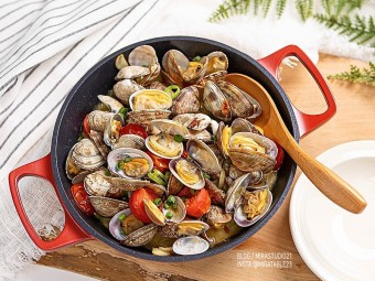추운 겨울인 크리스마스 홈파티에 국물요리 하나정도는 있어야 되지않을까요 정말 쉬우면서도 재료도 많이 안들어고 얼큰하고 시원한 맛을 낼 수 있는 바지락 술찜입니다. 홈파티하게되면 무조건 술을 마시게 되는데 바지락 술찜이 있다면 중간 중간 해장도 겸사겸사 할 수 있을겁니다. 보통 시중에서 파는 바지락은 해감되어있는게 많으니, 해감된 바지락만 구입하시면 준비는 다 끝난겁니다. 다 드시고도 좀 부족하다 싶으면 파스타면을 넣어서 먹으면 바지락국물 파스타도 되니 참고하시기 바랍니다.