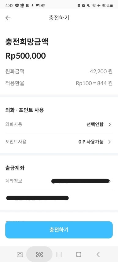 - 팔 때 환율이 적용 (실시간으로 충전 가능하므로 일 단위로 사용할 금액만 조금씩 충전하는 것을 권장)