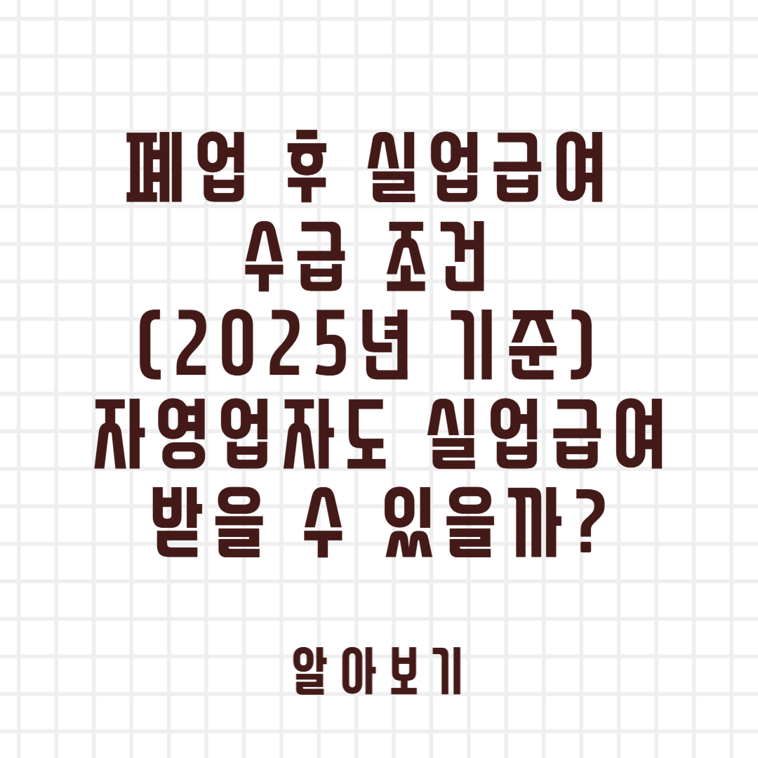폐업 후 실업급여 수급 조건 (2025년 기준) 자영업자도 실업급여 받을 수 있을까?