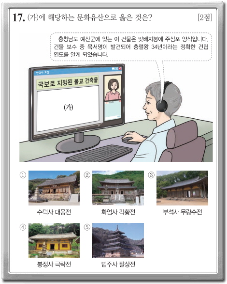 ✔ 포인트: 충남 예산, 맞배지붕, 주심포양식, 충렬왕