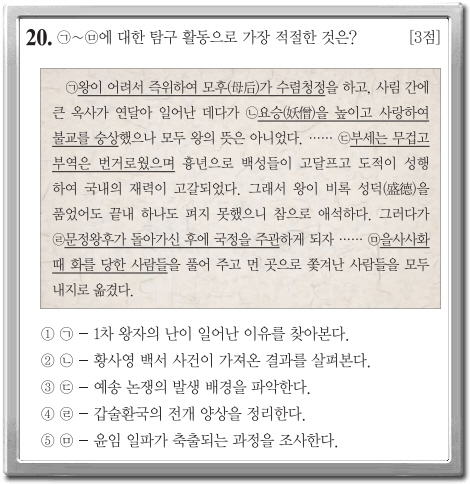 밑에 시기를 왕의 시기로 생각해서 풀면 좀 더 쉽게 풀 수 있을 겁니다.