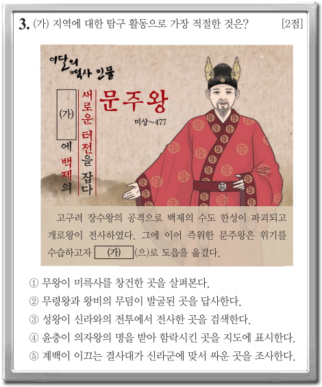 제시문을 보면 문주왕이 언급되고 백제의 새로운 터전을 잡았다고 합니다.