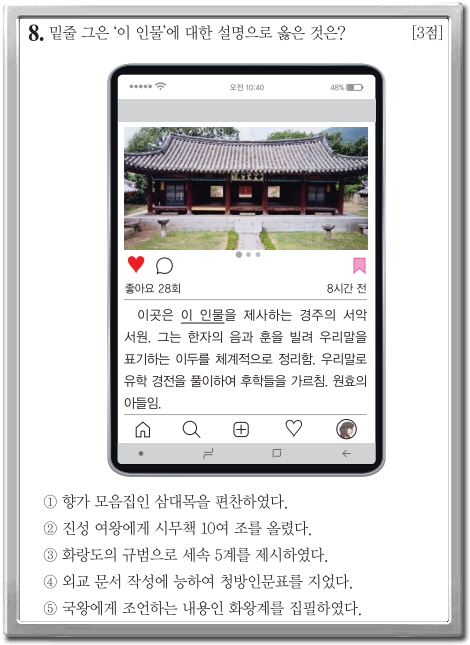 설총임을 알 수가 있습니다. 설총의 대표적인 업적은 이두정리와, 화왕계를 저술했습니다.