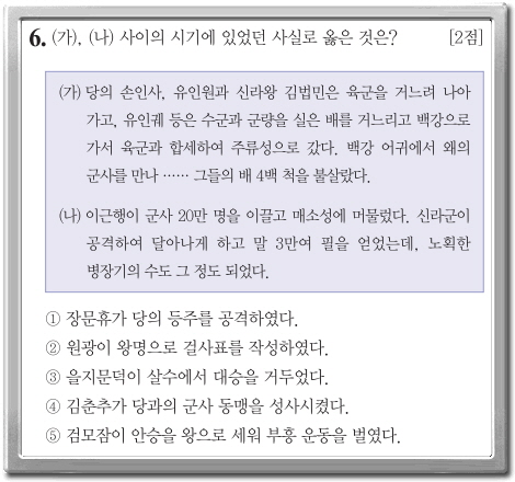 (가) 신라왕 김법민은 수군과 군량을 실은 배를 백강으로 가서... 보아 663년 백강 전투입니다.