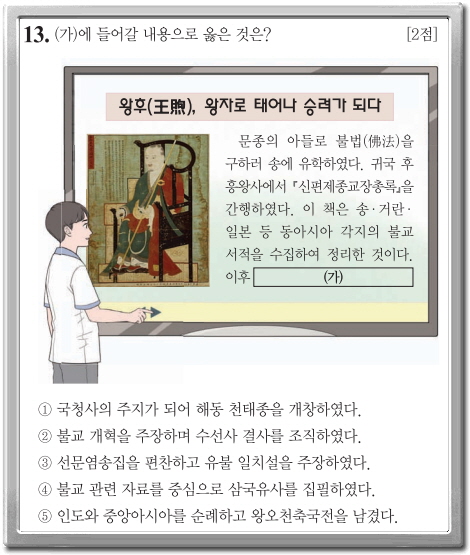 ➀ 국청사의 주지, 해동 천태종을 개창한 것은 의천입니다.