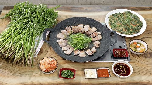 미나리가 청도만 유명한 줄 알았는데, 문경도 미나리로 유명하다고 합니다. 미나리밭 바로 옆에서 약돌 돼지를 워 먹을 수 있는 집입니다. 가을부터 추운 겨울을 보낸 미나리는 더욱 싱싱하고 맛이 좋고 문경에서만 나는 거정석을 먹여 키운 약돌돼지를 함께 구워 먹으면 맛이 아주 좋습니다. 5월까지만 맛볼 수 있는 별미라니, 늦기 전에 얼른 문경으로 달려가 늦은 봄을 즐기시기 바랍니다.