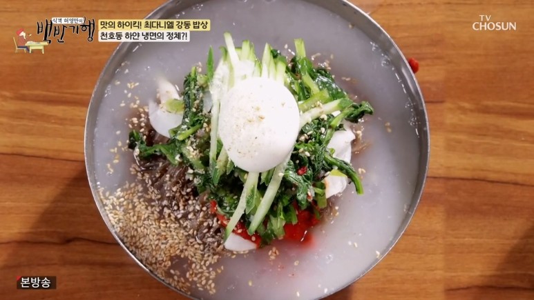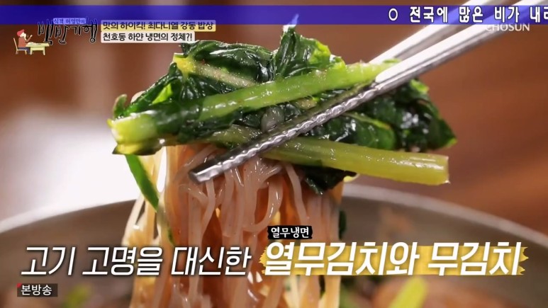 명실상부 강동구의 중심인 천호동에는 볼거리와 먹을거리가 넘치지만 날이 살살 풀리는 요즘, 특히 사람 몰리는 유명한 냉면 골목이 있습니다. 그중에서도 열무냉면 하나로 여럿 줄 서게 만드는 특별한 냉면집이 있는데 단골손님들이 입을 모아 주문하는 이 댁 열무물냉면을 보자마자 가장 먼저 하얀 국물이 눈에 띕니다. 구수한 사골 육수와 새콤달콤한 동치미 국물이 섞인 하얀 국물이 낯설긴 했지만 막상, 묵직하면서도 은근히 시원한 맛이 난달까요? ‘여름 인삼’이라 불리는 열무까지 올렸으니, 이 열무물냉면 하나로 올해 무더위 준비는 끝났습니다.
