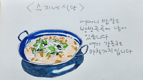 서울에선 맛있는 백반집을 찾기 어렵습니다. 한 번씩 들러 복잡한 속을 풀고 싶은 작은 백반집을 강동에서 찾았습니다. 주인장은 매일 볶음, 조림, 무침 등 서로 다른 조리법과 맛으로 균형 있게 구성된 반찬을 내놓는데 손맛이 일품입니다. 매일 정성을 다하는 주인장이 특별히 아끼는 음식, 황태해장국도 맛이 좋습니다. 친정어머니가 자주 해주셨던 옛 맛을 그대로 재현했다더군요. 어머니의 밥상을 내기 위해 소금과 조미료를 쓰지 않는 것이 주인장의 철칙이라죠. 여기에 황태해장국 국물로 익혀 먹는 별미, 수란을 곁들이면 맛은 물론 건강까지 생각한 어머니의 밥상과 다름없는 한 상이 완성됩니다.