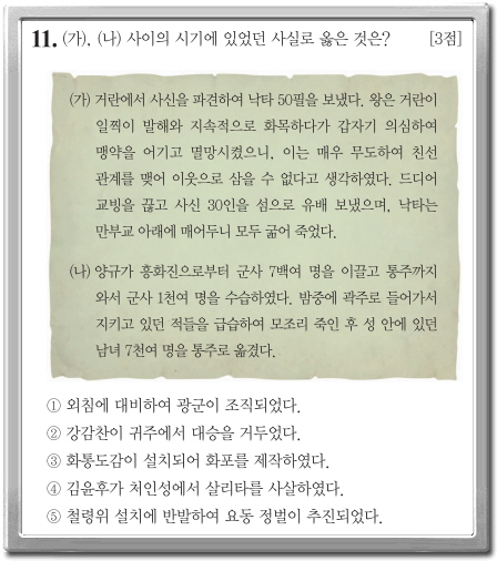 제시문을 통해 해당되는 왕의 시기에 있었던 일을 물어보는 문제입니다.