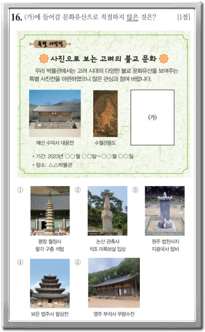 예산 수덕사 대웅전, 수월관음도를 통하여 고려의 불교 문화에 대해서 설명하고 있습니다.