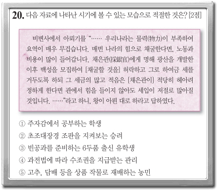 비변사에서 거론된 내용으로 요역이 무겁다고 하고 광산을 개발한것으로 보아 조선 후기를 말하고 있습니다.