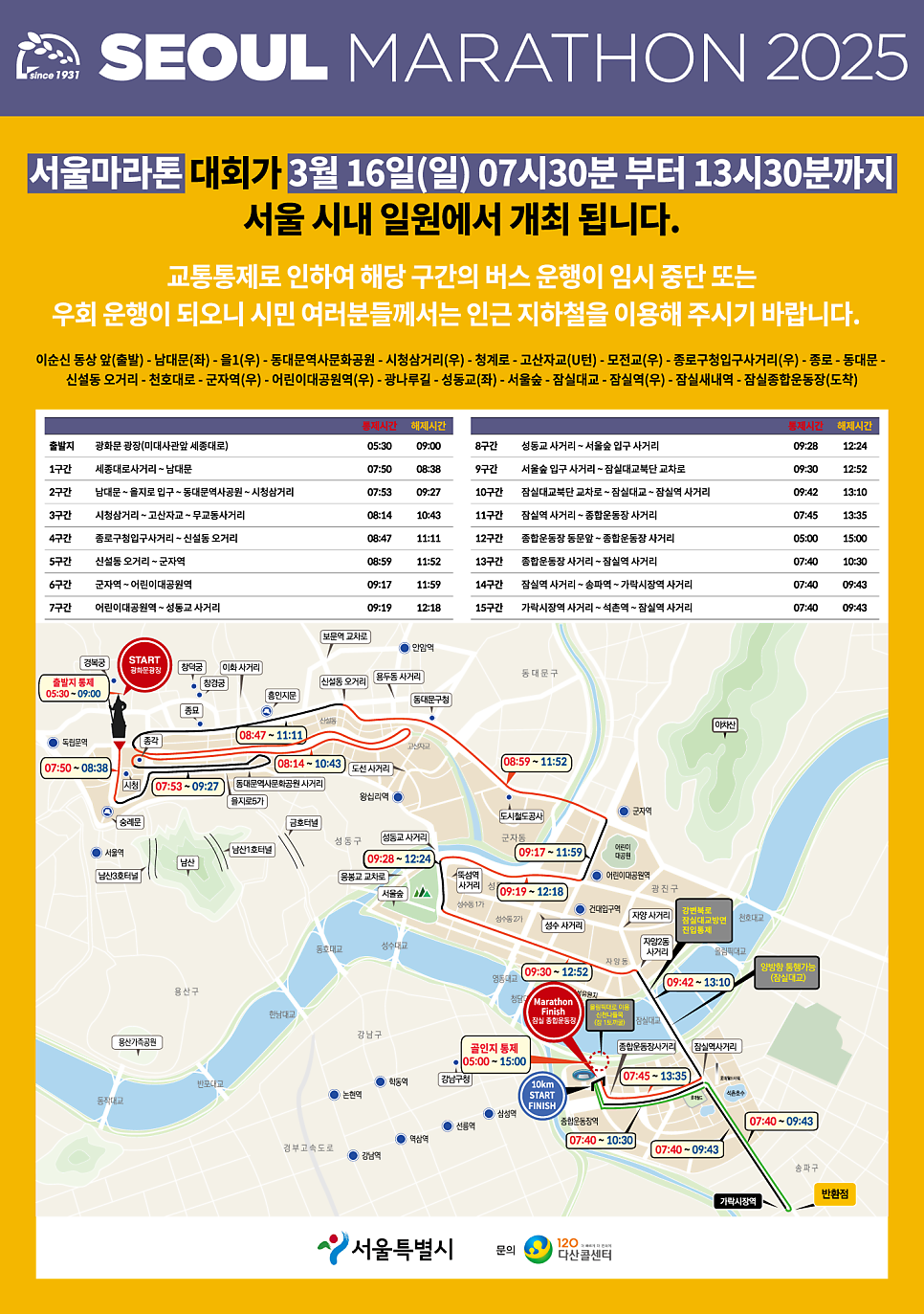 ✔ 출발지인 광화문 광장 교통 통제를 시작으로 코스와 대회 진행 시간에 따라 순차적으로 교통 통제